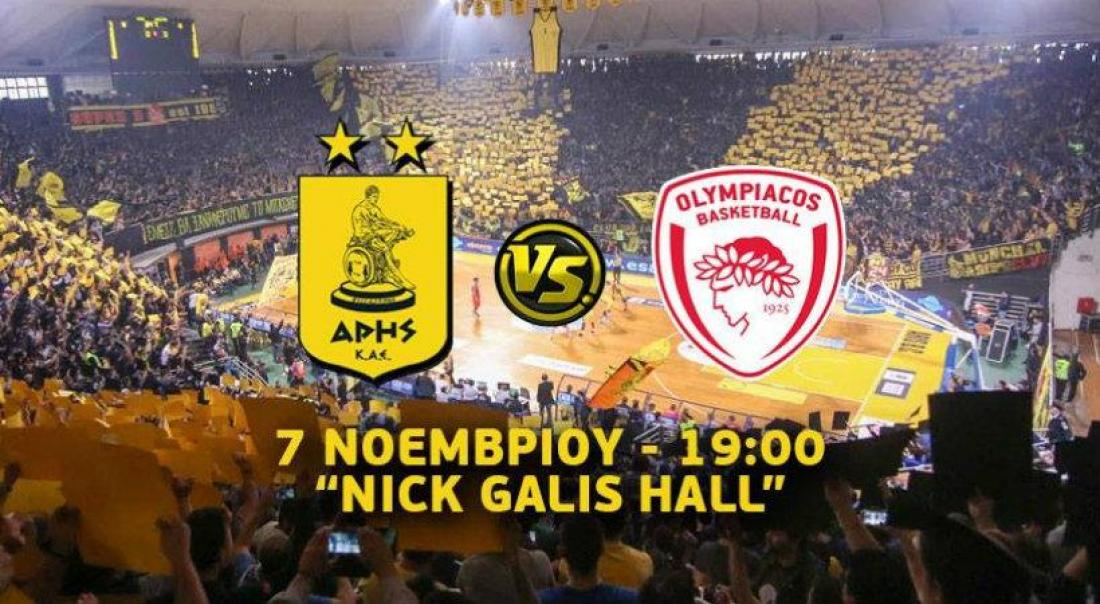 Από σήμερα, Τρίτη 1/11, ξεκινά η διάθεση των εισιτηρίων, για το σπουδαίο παιχνίδι ανάμεσα στον Άρη και τον Ολυμπιακό, στο "Nick Galis Hall", για την 5η αγωνιστική του πρωταθλήματος της Basket League (07/11, 19:00).
