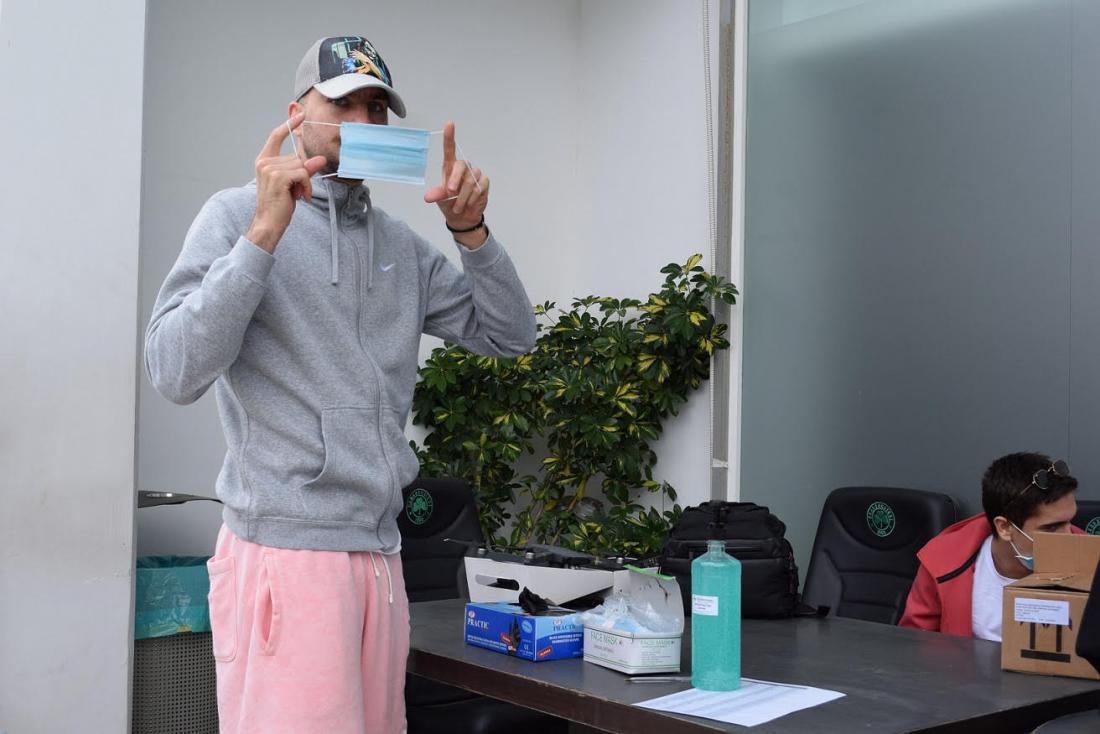 Μάσκες, γάντια και αντισηπτικά περίμεναν τους παίκτες και το υπόλοιπο τιμ της ομάδας στην είσοδο. Οι αγκαλιές και οι χειραψίες ανήκουν στο παρελθόν. Πλέον οι χαιρετισμοί γίνονται με τους αγκώνες. Δεν λείπουν βέβαια τα αστεία μεταξύ των παικτών, αλλά και οι ιστορίες για το πως πέρασαν στη διάρκεια της καραντίνας. Όλα αυτά όμως, κρατώντας την απόσταση ασφαλείας.