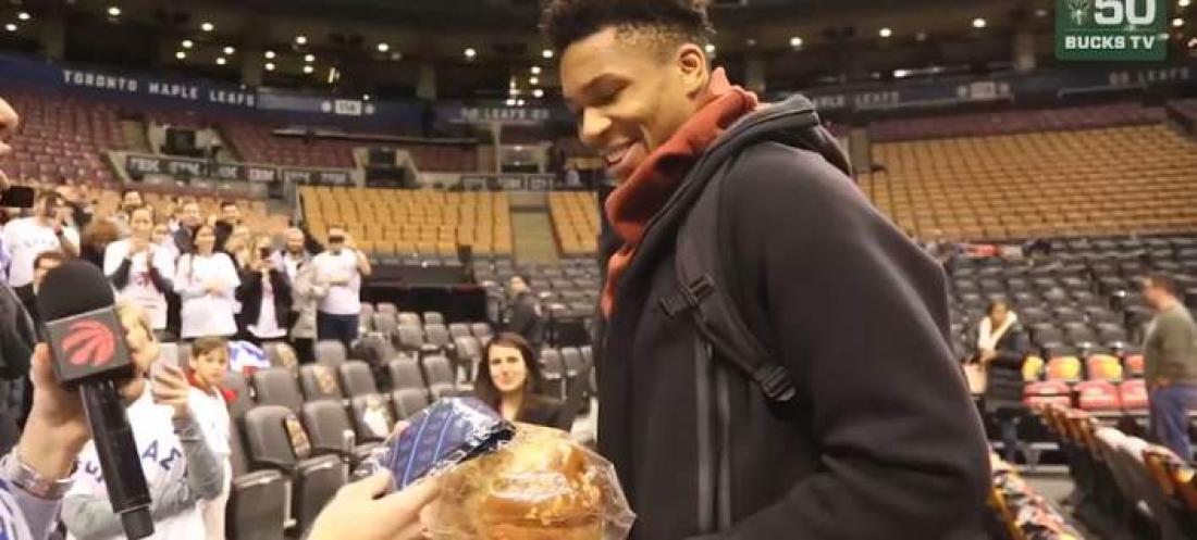 Μάλιστα του έκαναν και κάποια δώρα, ενώ του πρόσφεραν ακόμη και βασιλόπιτα για την οικογένειά του. Ο 23χρονος Ελληνας σούπερ σταρ των Μπακς υπέγραψε όσα αυτόγραφα προλάβαινε, καθώς η ομάδα του τον πίεζε για την αναχώρησή της με το αεροπλάνο και την επιστροφή στο Τορόντο.