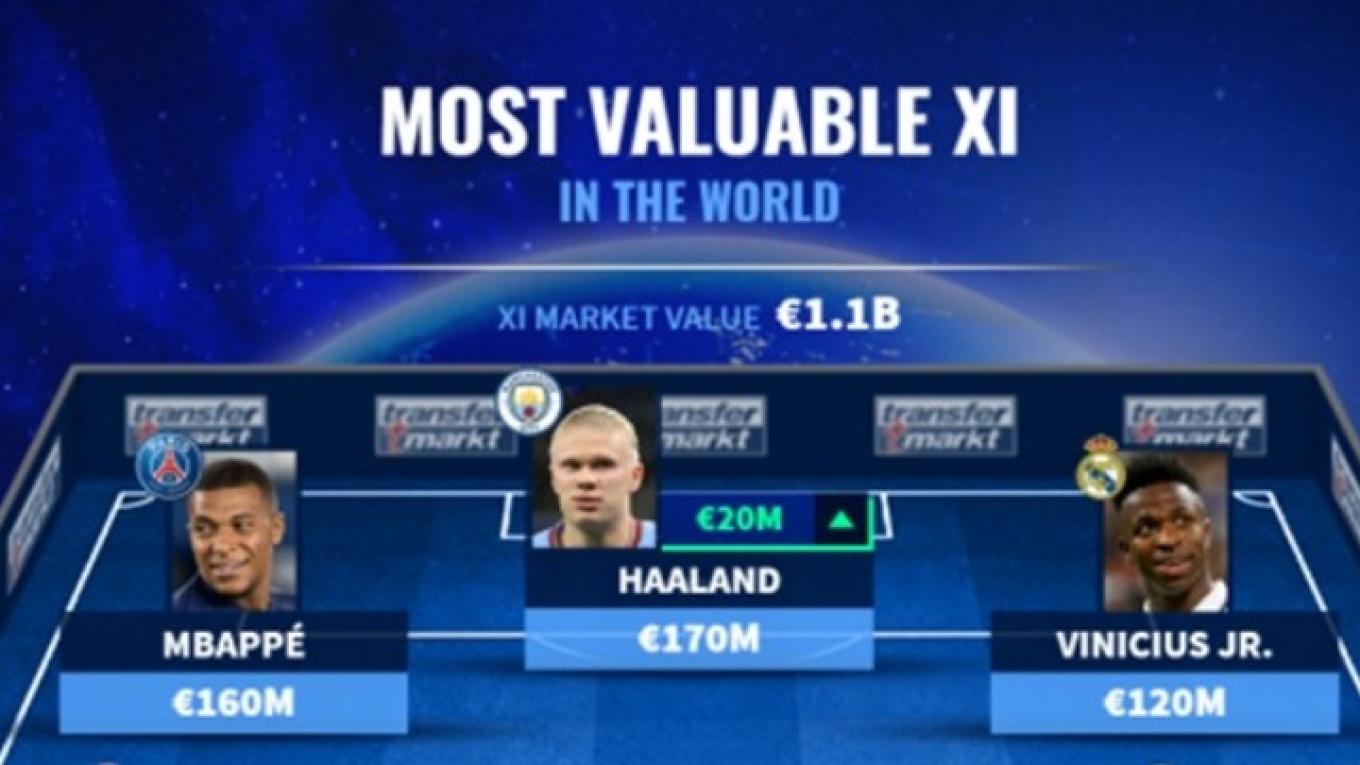 Ακριβότερος παίκτης παραμένει με αξία 170 εκατομμύρια ευρώ ο Έρλινγκ Χάαλαντ, ο οποίος μαζί με τον Ρις Τζέιμς (Τσέλσι) είναι οι δύο της ενδεκάδας που θα απουσιάσουν από το Μουντιάλ του Κατάρ (20/11-18/12), ο πρώτος επειδή η Νορβηγία δεν προκρίθηκε, ο έτερος λόγω τραυματισμού.