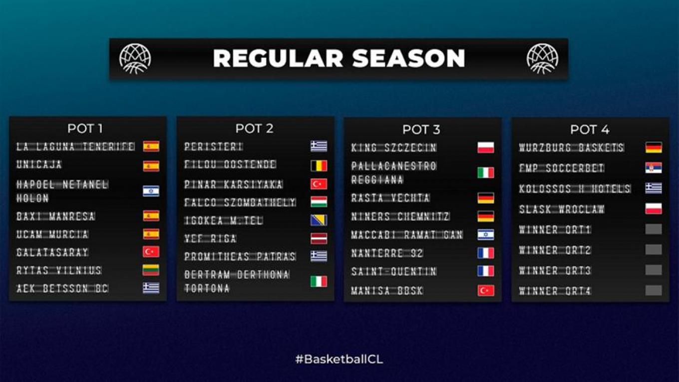 Η FIBA ανακοίνωσε τα γκρουπ δυναμικότητας εν όψει της κλήρωσης για το Basketball Champions League που θα γίνει την Τετάρτη στις 12:00.