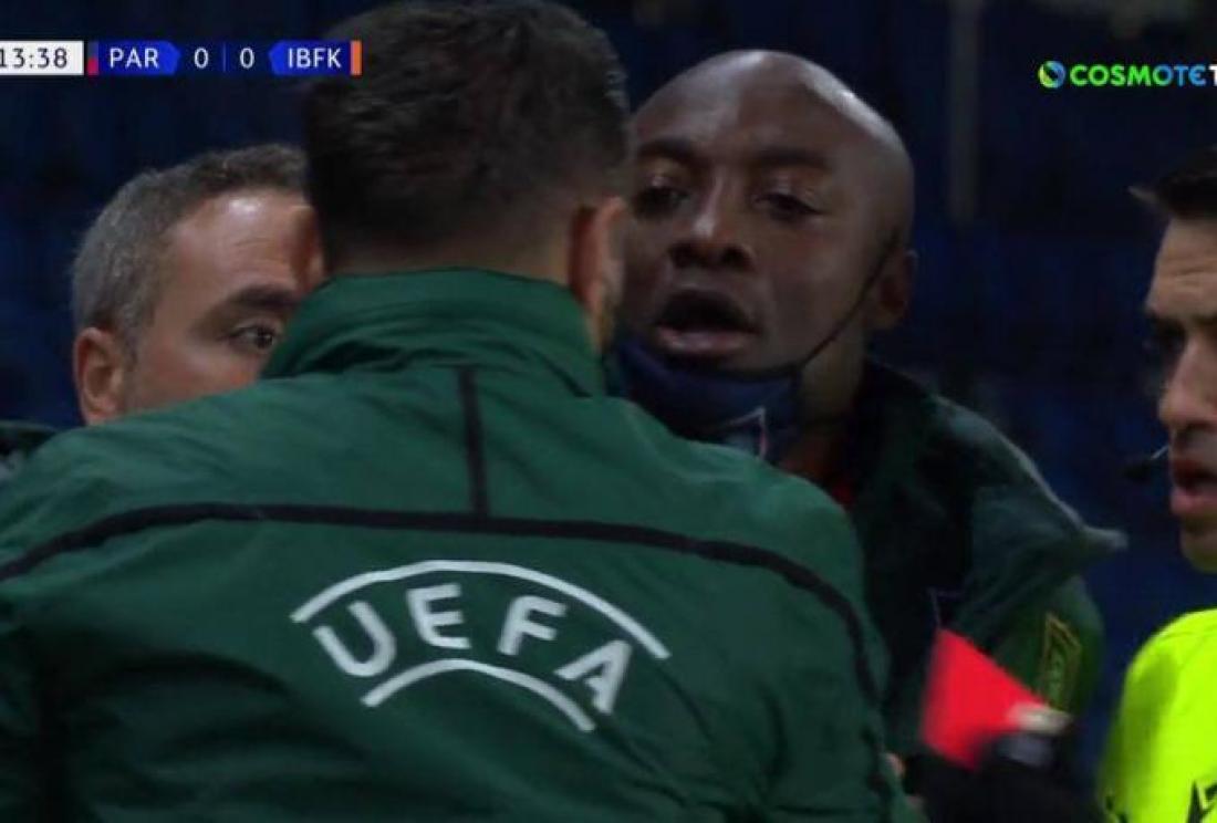 Αδιανόητες σκηνές στο Παρίσι: στο 18ο λεπτό της αναμέτρησης Παρί Σεν Ζερμέν- Μασάκσεχιρ ο βοηθός προπονητή των φιλοξενούμενων αποβλήθηκε αντικρίζοντας την κόκκινη κάρτα, και μετά ακολούθησε... ροντέο.