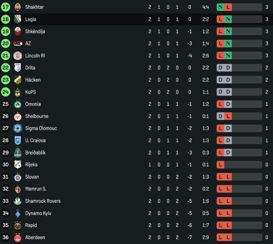 Τέλος, η επόμενη αντίπαλος της ΑΕΚ, η Σάμροκ Ρόβερς, ηττήθηκε εντός έδρας από την... προηγούμενη αντίπαλο της Ένωσης, την Τσέλιε με σκορ 2-0, ενώ η Σαμσουνσπόρ νίκησε εμφατικά 3-0 την Ντινάμο Κιέβου.
