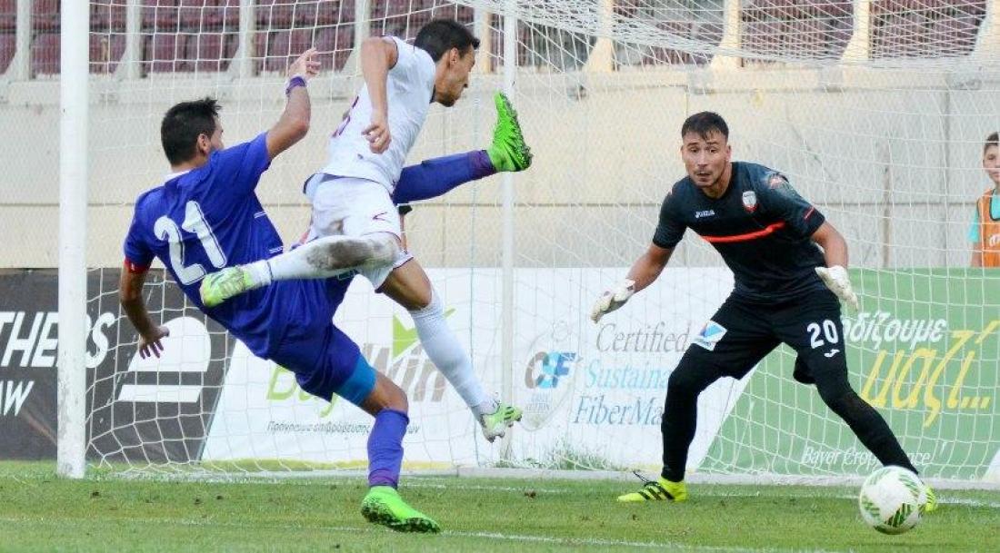 Οι βυσσινί μπήκαν καλύτερα στον αγώνα και προηγήθηκαν με πέναλτι του Βαρέλα στο 8’ (ανετράπη ο Ντελέτις). Οι ακρίτες ανέλαβαν τα ηνία του ματς, έχοντας μια φλύαρη υπεροχή, με την ομάδα του Αναστασιάδη να δίνει χώρο και να περιμένει στις αντεπιθέσεις.