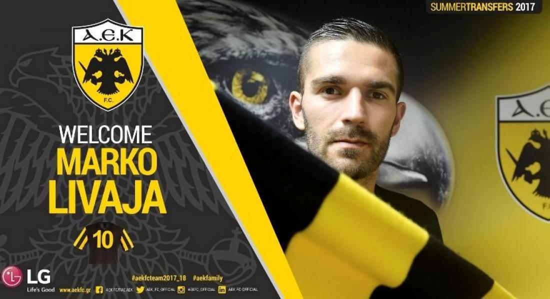Και επίσημα παίχτης της ΑΕΚ, είναι από σήμερα ο Μάρκο Λιβάια! Ο 24χρονος Κροάτης επιθετικός βρέθηκε στα γραφεία της Ένωσης, υπέγραψε το συμβόλαιο με τη νέα του ομάδα και την Τρίτη θα βρεθεί στην Πολωνία για να ενσωματωθεί στην προετοιμασία.
