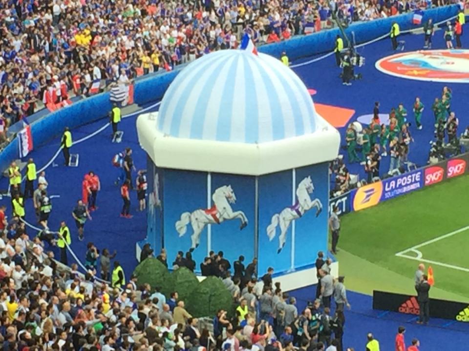 Αερόστατα, καρουσέλ στις γωνίες και οι θεατές να αντιδρούν και να χειροκροτούν μόνο όταν ο DJ και οργανωτής της τελετής Νταβίντ Γκέτα έπαιξε την διασκευή "I Got A Feelin" των Black Eyed Peas . Λίγο πριν το τέλος αποκαλύφθηκε ένας τεράστιος Πύργος του Αϊφελ .