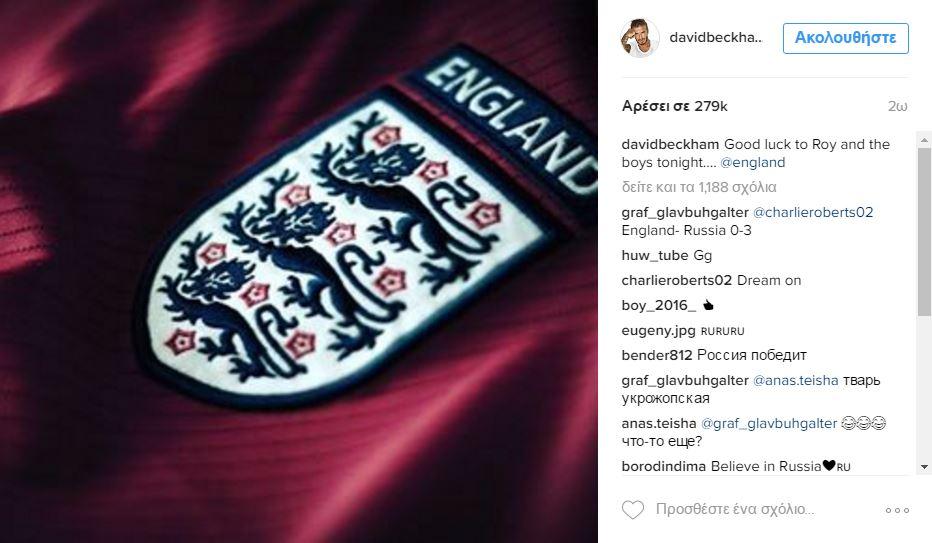Με πολύ μεγάλη αγωνία την αναμένει και ο άσος του ποδοσφαίρου, Ντέιβιντ Μπέκαμ ο οποίος δήλωσε ότι είναι στο πλευρό της Αγγλίας, μέσα από μια φωτογραφία στα social media.