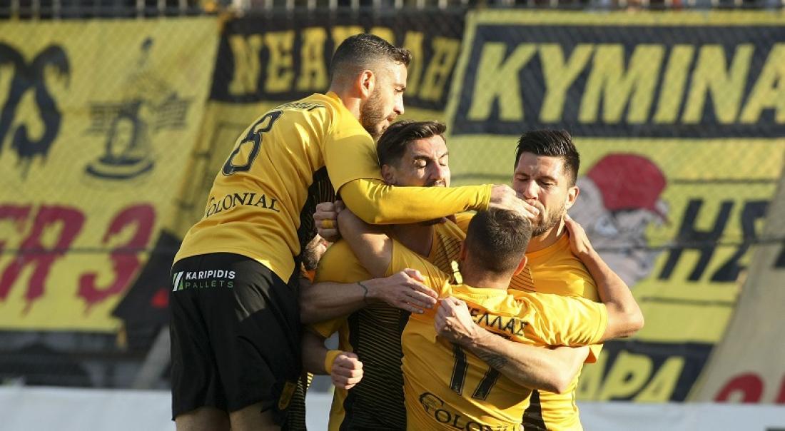 Οι «κιτρινόμαυροι» επικράτησαν 2-0 με γκολ των Πλατέλλα (14’) και Ντούνη (45’), με την ομάδα της Καλαμαριάς -που έπαιξε με δέκα παίκτες από το 34’- να μένει με έντονα παράπονα για αποφάσεις της διαιτησίας.