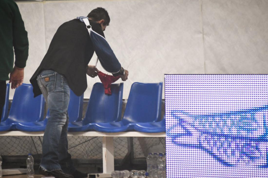 Οι δημοσιογράφοι μεταξύ άλλων ρώτησαν τον Δημήτρη Γιαννακόπουλο για την κίνησή του να τοποθετήσει ένα κόκκινο στρινγκ στον πάγκο του Ολυμπιακού, ενώ οι ερυθρόλευκοι είχαν αποχωρήσει από το ΟΑΚΑ.