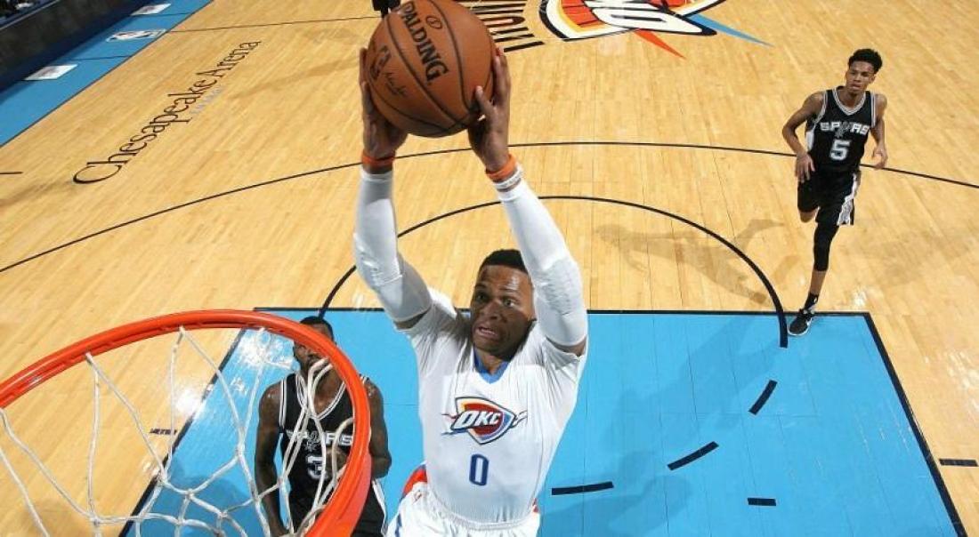 Τα 31 τριπλ-νταμπλ στη φετινή σεζόν έφτασε ο Russell Westbrook, που με 23 πόντους, 13 ριμπάουντ και 13 ασίστ, οδήγησε τους Oklahoma City Thunder στη νίκη με 102-92 επί των San Antonio Spurs.