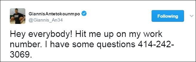 Το twitter του Γιάννη Αντετοκούνμπο χάκαρε κάποιος, ο οποίος δημοσίευσε ακόμα και το τηλέφωνο του!