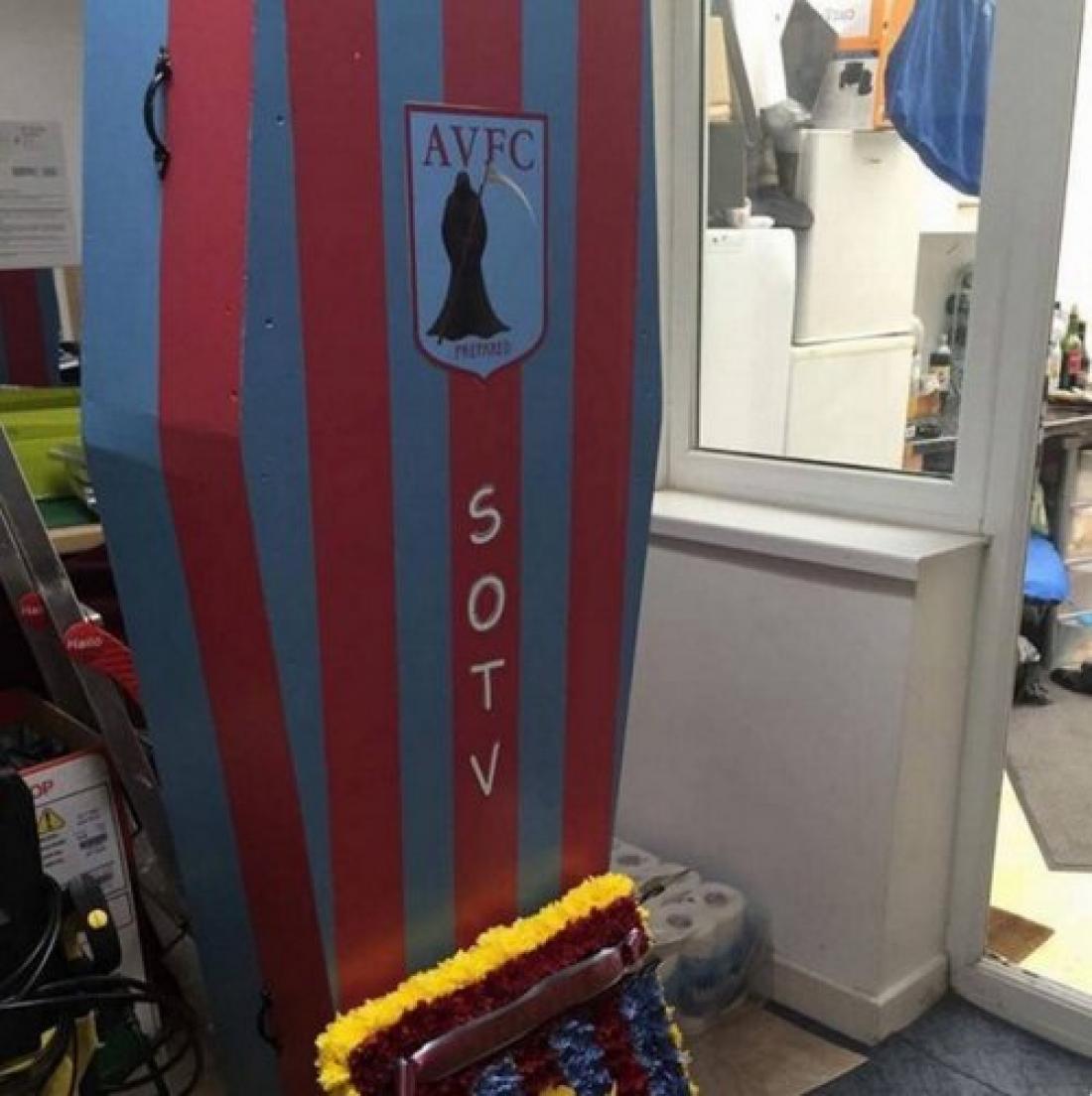 Στους δρόμους της πόλης, οι οπαδοί της Μπέρμινχαμ, ετοίμασαν την...κηδεία της Άστον Βίλα και την περιφορά ενός φερέτρου με τα χρώματα της ομάδας.