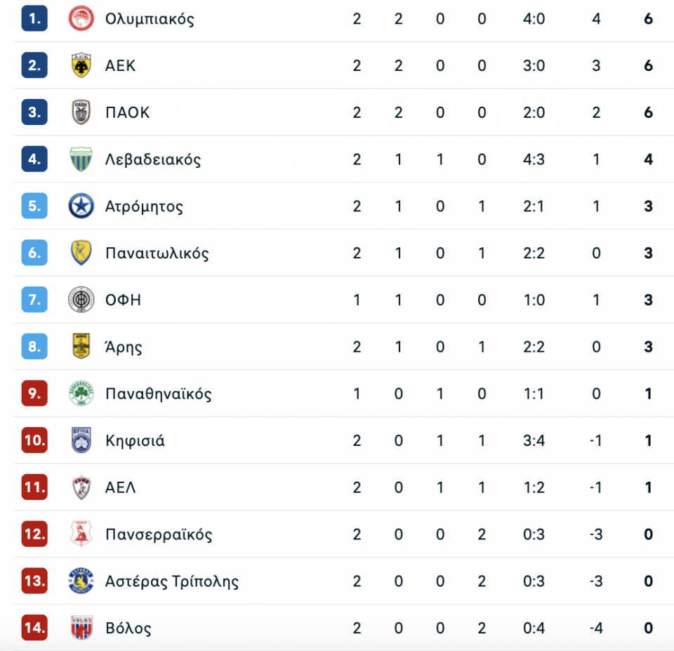 Δείτε τη βαθμολογία του ελληνικού πρωταθλήματος.
