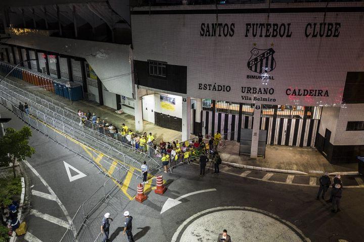 Η σορός του «βασιλιά» του ποδοσφαίρου μεταφέρθηκε απ’ το νοσοκομείο «Άλμπερτ Αϊνστάιν» στο κέντρο του σταδίου Vila Belmiro (την έδρα της Σάντος όπου μεγαλούργησε ως ποδοσφαιριστής ο θρυλικός άσος) τα ξημερώματα της Δευτέρας, το οποίο έχει χωρητικότητα 16.000 ατόμων.