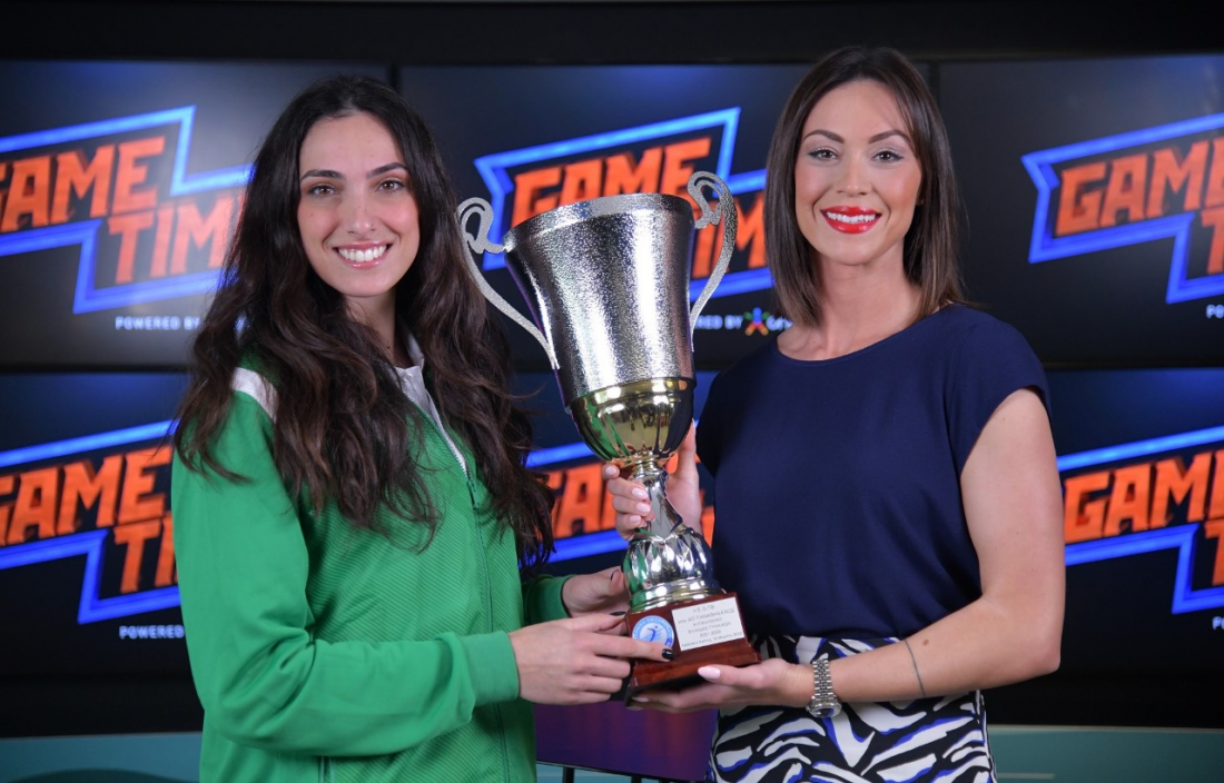 Η Κυπελλούχος βολεϊμπολίστρια του Παναθηναϊκού Μανωλίνα Κωνσταντίνου στο ΟΠΑΠ Game Time ΜΠΑΣΚΕΤ