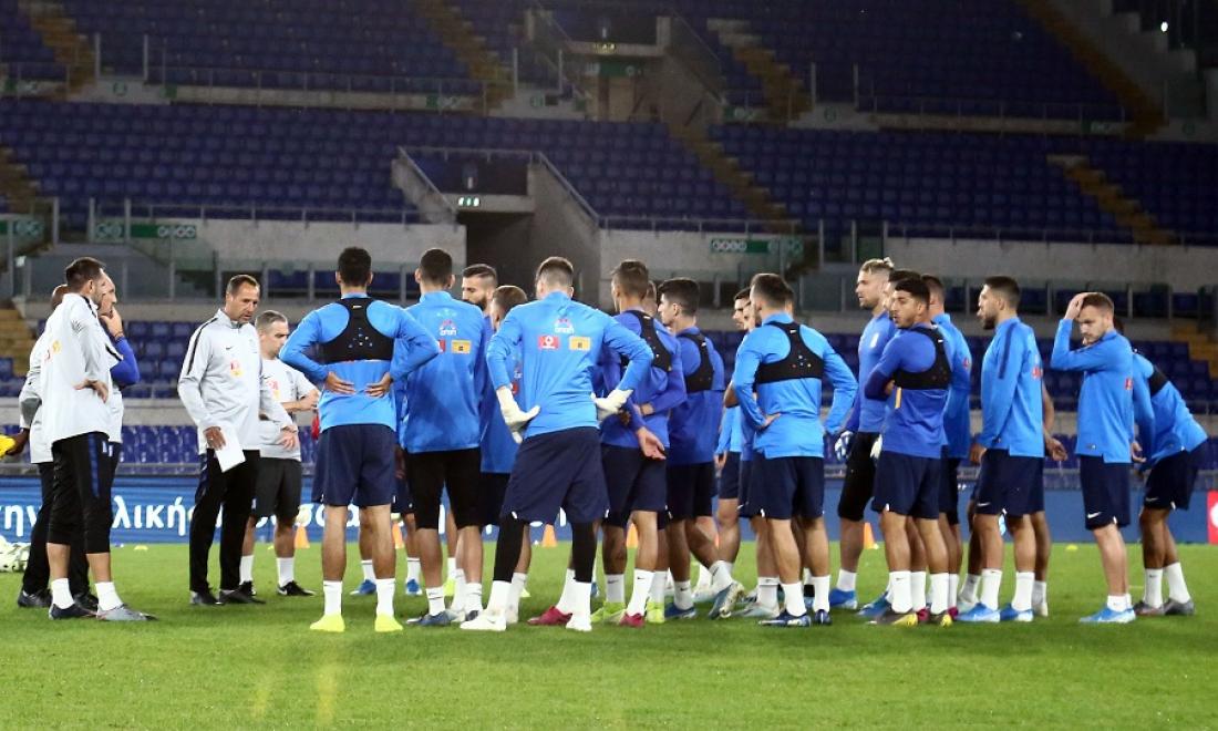 Στις τελευταίες προπονήσεις ο Τζον Φαν’ τ Σιπ έκανε αρκετές δοκιμές για την επιλογή προσώπων, αλλά και τη διάταξη του αγώνα της «γαλανόλευκης» στη Ρώμη . Ο ομοσπονδιακός τεχνικός αναμένεται να παρατάξει το αντιπροσωπευτικό μας συγκρότημα με το 4-3-3, το οποίο μπορεί -σε ορισμένες περιπτώσεις να μετατρέπεται σε 4-3-1-2.