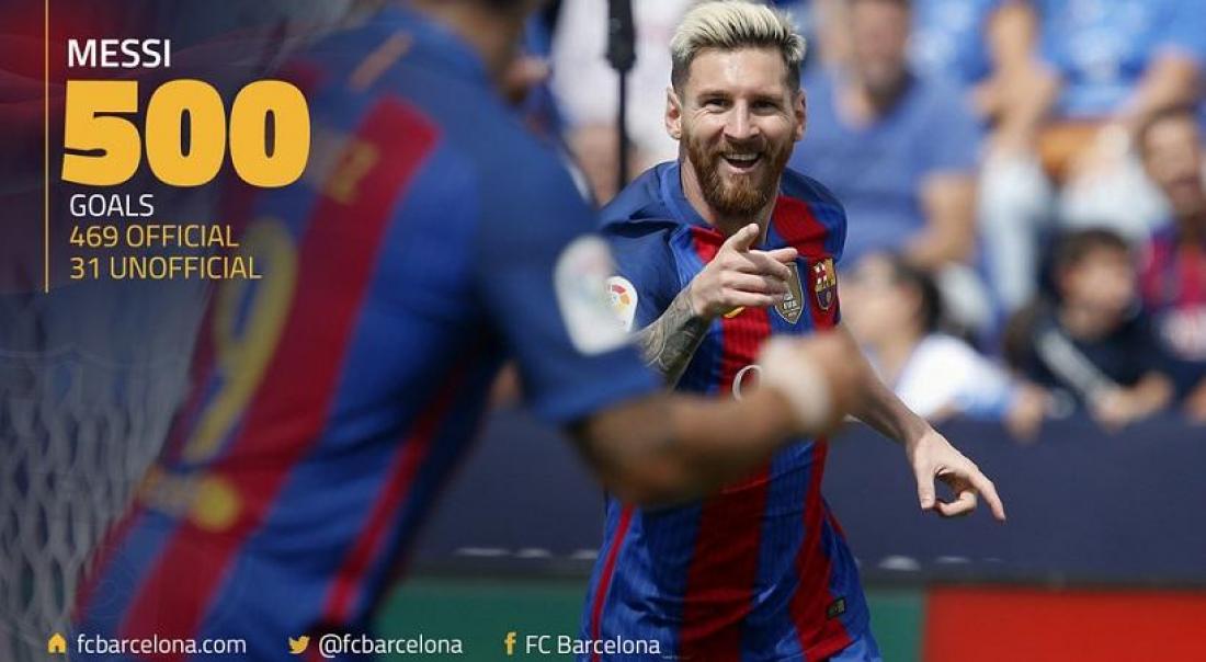 O Λιονέλ Μέσι, έφτασε τα 500 τέρματα με τη φανέλα της Μπαρτσελόνα, με το γκολ που πέτυχε απέναντι στη Σεβίλλη, στη νίκη των "μπλαουγκράνα" με 1-2.