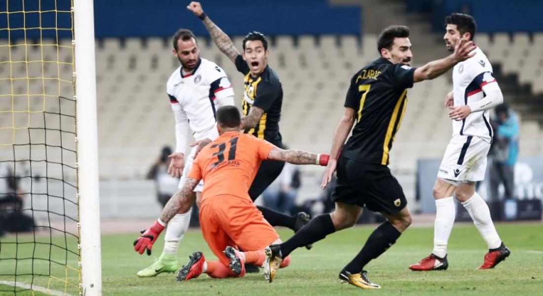 Η μπάλα στρώθηκε στον Αραούχο έπειτα από γέμισμα στην περιοχή και ο Αργεντινός με ωραίο και δυνατό σουτ την έστειλε στη γωνία του Γιαννακόπουλου.