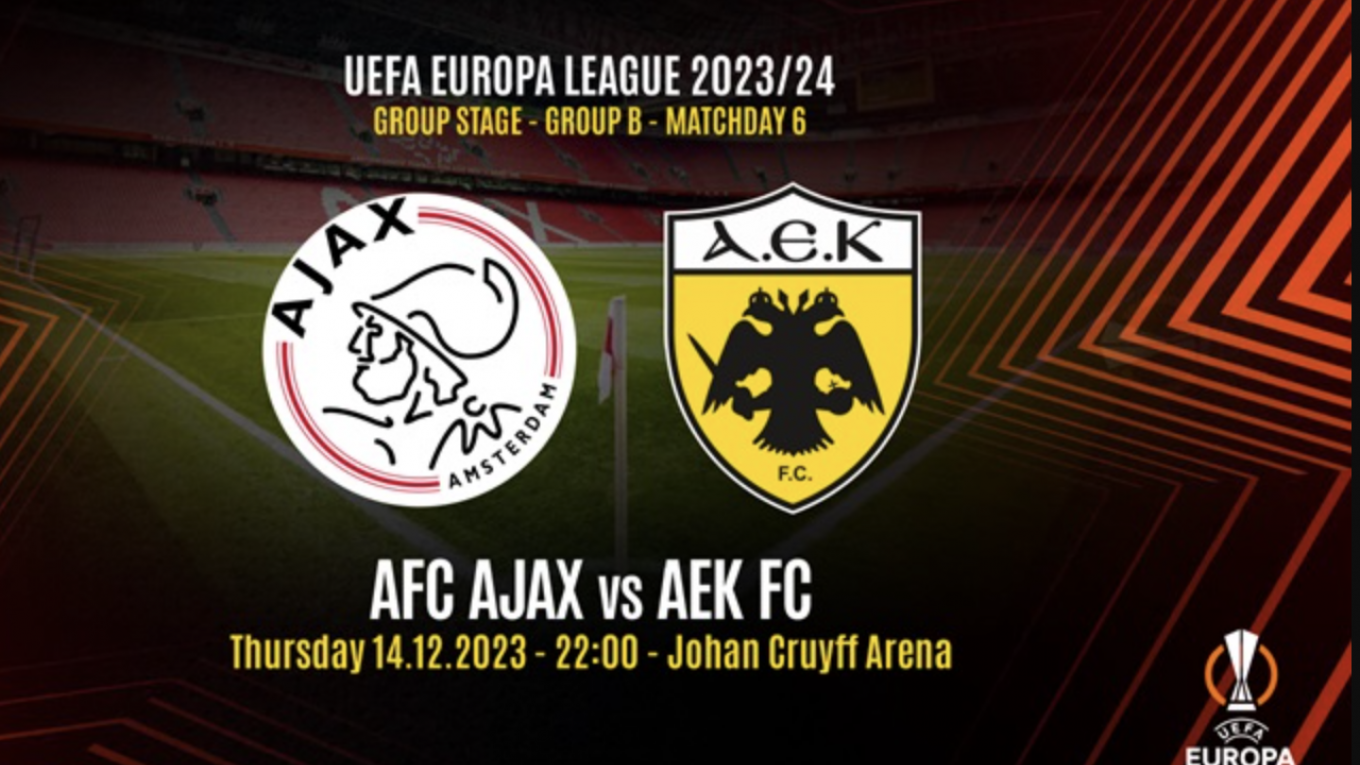 Το εισιτήριο για το Conference League θα διεκδικήσει η ΑΕΚ απόψε (22:00, COSMOTE SPORT 6 HD), αντιμετωπίζοντας τον Άγιαξ στην έδρα του.