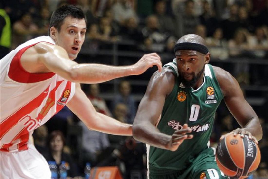 Τέλεια άμυνα από τον Παναθηναϊκό. Η μπάλα έμεινε στα χέρια των παικτών του Ερυθρού Αστέρα
