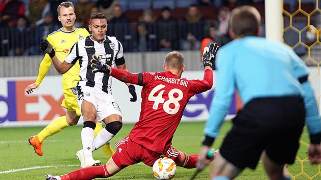 Το όνειρο της πρόκρισης στους "32" για τον ΠΑΟΚ έσβησε πριν καλά καλά ωριμάσει σήμερα, μετά την ήττα από την πολύ καλή ΜΠΑΤΕ με 1-3 στην Τούμπα. Η ομάδα από την Λευκορωσία ήταν πιο διαβασμένη και κυριάρχησε στο πρώτο ημίχρονο όταν μάλιστα πέτυχε και τα τρία της τέρματα με τους Σκάβις (17΄) Σίγκνεβιτς (42΄ πέναλτι, 45΄+1). ο ΠΑΟΚ μείωσε στο 59΄ με τον Πρίγιοβιτς αλλά δεν αρκούσε αυτό για να πάρει μπροστά ο ΠΑΟΚ και να φθάσει σε καλύτερο αποτέλεσμα. Οι φιλοξενούμενοι αγωνίστηκαν με παίκτη λιγότερο από το 62΄, λόγω αποβολής του Σίγκνεβιτς.