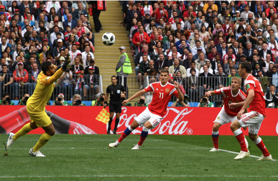 Gazinsky abriu o placar para a Rússia. É o primeiro gol da Copa de 2018.#RUS #CopadoMundo #Copa2018 pic.twitter.com/bLCeDNlEOf