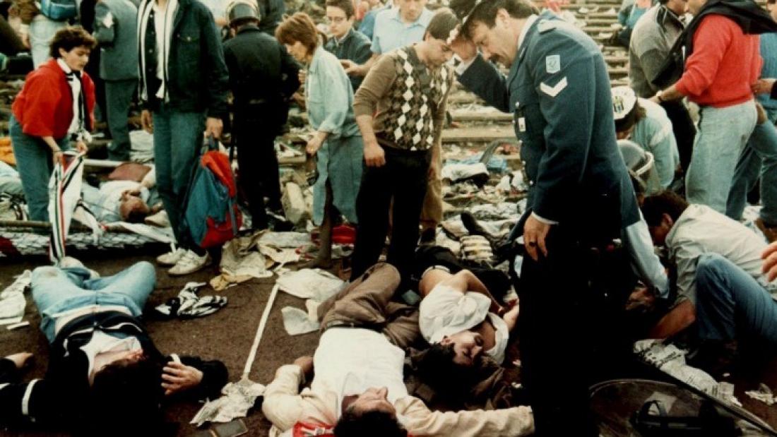 Μια ώρα πριν από την έναρξη του παιχνιδιού, οι Άγγλοι οπαδοί αρχίζουν να κατευθύνονται προς τον τομέα Ζ του σταδίου, εκεί όπου βρίσκονταν οι Ιταλοί φίλαθλοι, σπάζοντας τα διαχωριστικά κιγκλιδώματα. Οι Ιταλοί στην προσπάθειά τους να τους αποφύγουν να αναγκάζονται να κατευθυνθούν προς ένα τοίχο. Όσοι βρίσκονταν κοντά στον τοίχο συνεθλίβησαν από την πίεση χιλιάδων ανθρώπων . Ο τοίχος τελικά κατέρρευσε, κάποιοι κατάφεραν να σκαρφαλώσουν με ασφάλεια. Πολλοί άλλοι, ωστόσο, έχασαν τη ζωή τους ή τραυματίστηκαν σοβαρά.