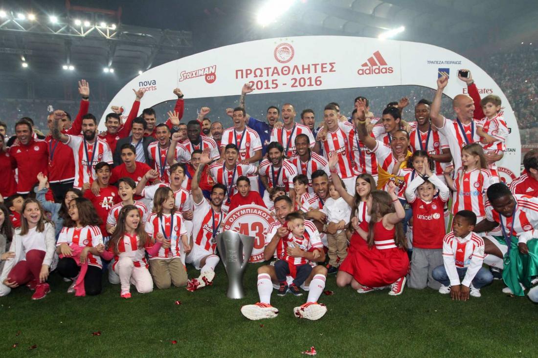 Σήμερα στο, όχι και τόσο γεμάτο, στάδιο Καραϊσκάκη, ο Ολυμπιακός πανηγύρισε το 43ο πρωτάθλημα της Ιστορίας, μέσα σε ένα κλίμα άκρως..."ερυθρόλευκο". Οι αθλητές του Ολυμπιακού που θα εκπροσωπήσουν την Ελλάδα στους Ολυμπιακούς Αγώνες του Ρίο, με μπροστάρη τον Σπύρο Γιαννιώτη ήταν στο γήπεδο. Η ομάδα Κ-17 του συλλόγου, βγήκε στον αγωνιστικό χώρο, με όλα τα τρόπαια του Ολυμπιακού μέσα σε αποθέωση από τον κόσμο των πρωταθλητών. Την κούπα της Σούπερ Λίγκας, σήκωσε πρώτος στον ουρανό του Φαλήρου ο Τσόρι Ντομίνγκεζ, υπό τον ήχο του ύμνου της ομάδας του Πειραιά.