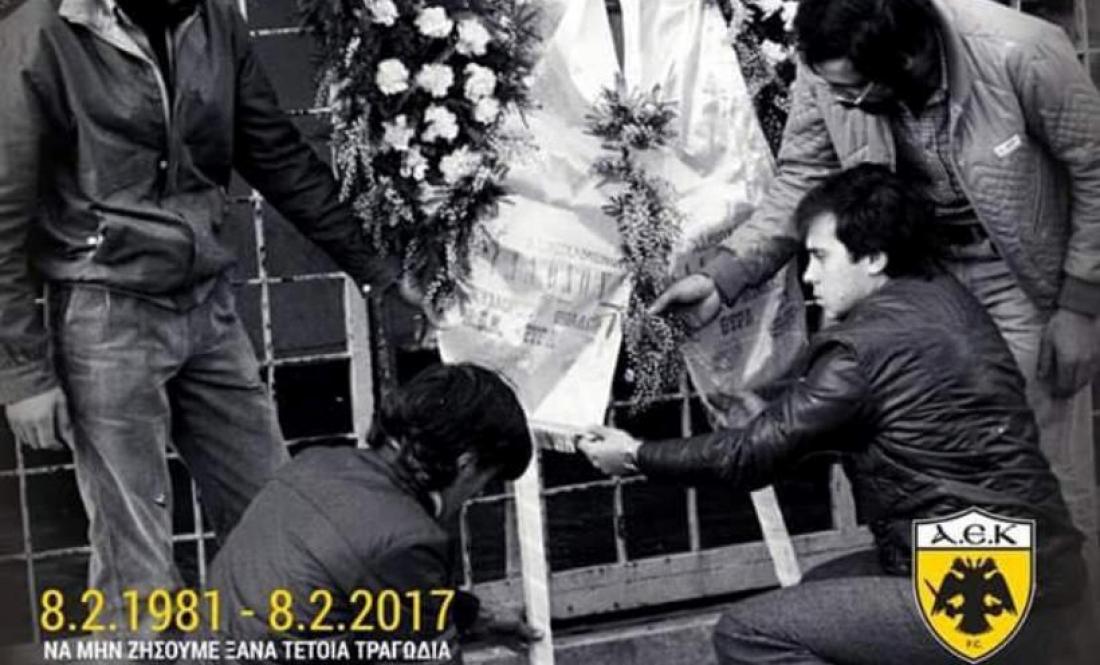 Με ανάρτηση στην επίσημη σελίδα του συλλόγου στο Facebook, η ΑΕΚ έστειλε το δικό της μήνυμα για τη θλιβερή επέτειο της τραγωδίας που σημάδεψε το ελληνικό ποδόσφαιρο. Κάνει λόγο για ημέρα πένθους και χαρακτηρίζει υποχρέωση όλων το να μη θρηνήσουμε ποτέ ξανά ζωές σε ελληνικά γήπεδα.