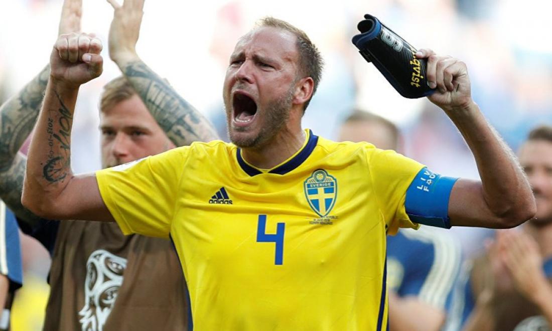 Sweden's Andreas Granqvist asks how Germany got on in the other match