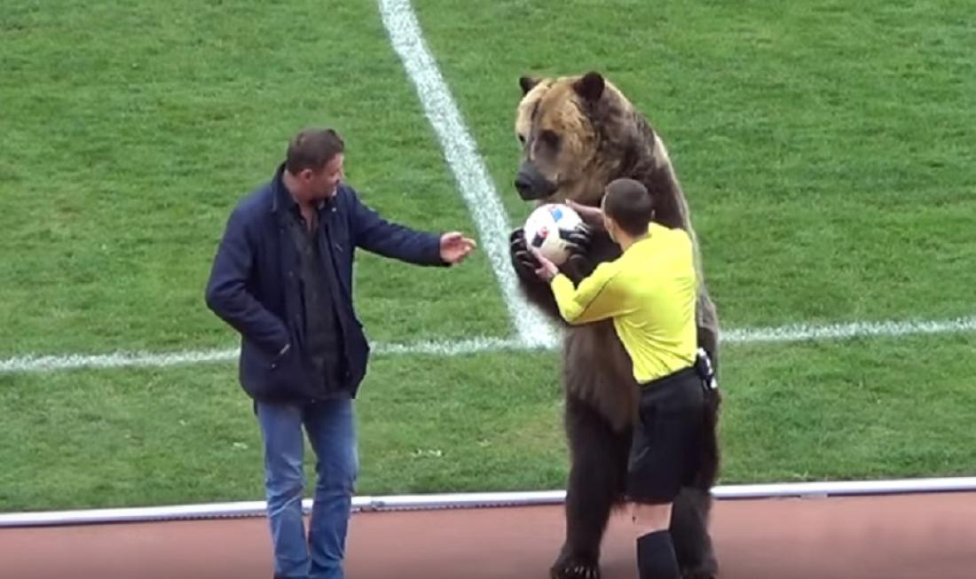 Στα πλαίσια αυτά, σε ματς της τρίτης κατηγορίας στη Ρωσία, ανάμεσα στην Mashuk-KMV και την Angusht Nazran, επιστρατεύτηκε μια... τεράστια, ολοζώντανη καφέ αρκούδα!