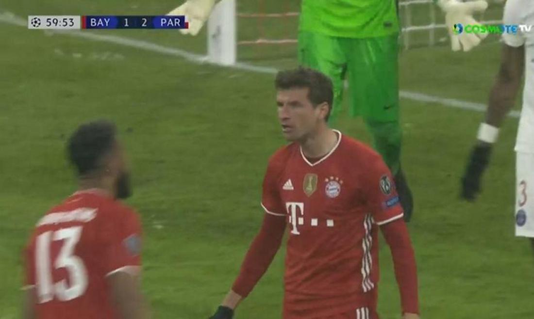 Μετά από άψογη εκτέλεση φάουλ του Γιόσουα Κίμιχ, ο Τόμας Μίλερ «πετάχτηκε» στην καρδιά της αντίπαλης άμυνας και με κεφαλιά ισοφάρισε σε 2-2 για την Μπάγερν που πάει για ολική ανατροπή.