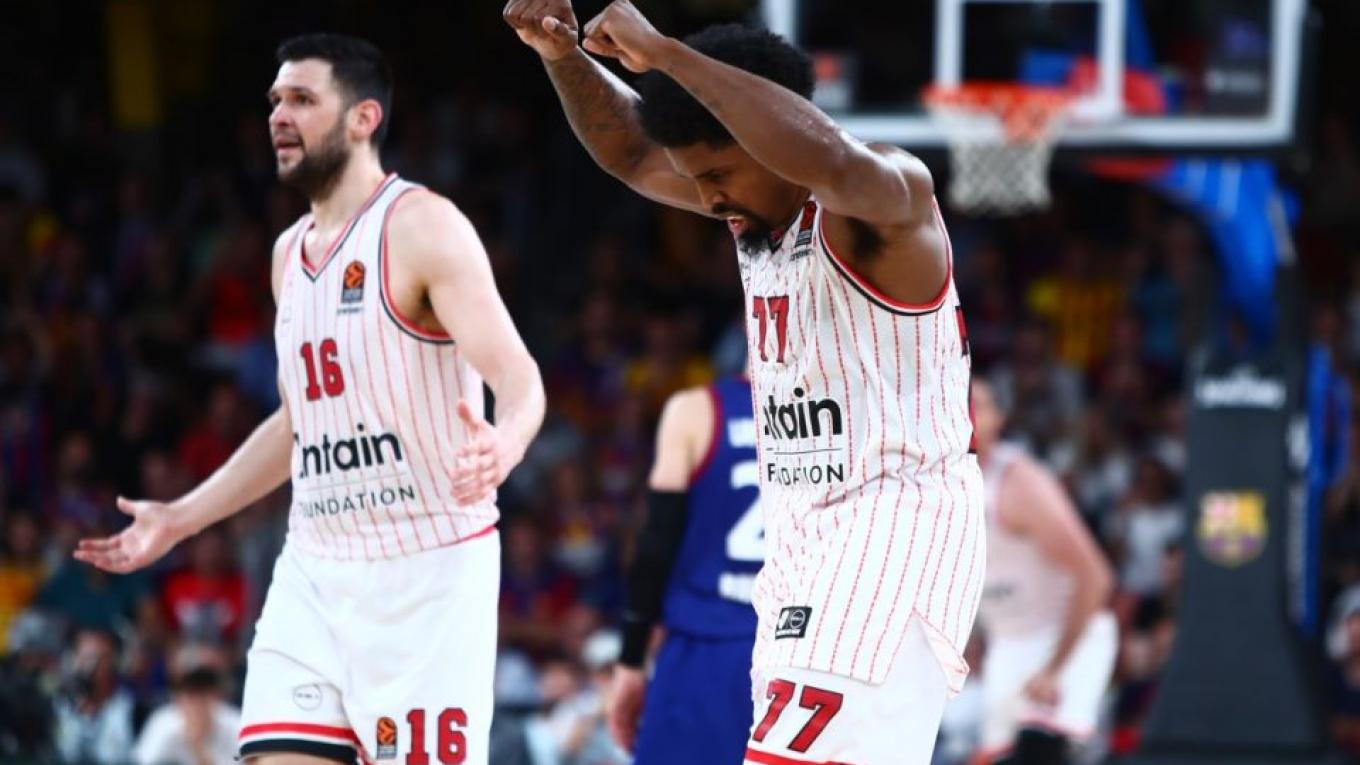 Ο ΜακΚίσικ έδωσε στους Πειραιώτες το πρώτο προβάδισμα (47-49) στο ματς, στο 35’, με τον Αμπρίνες να ισοφαρίζει προσωρινά (49-49), αλλά να ακολουθούν μεγάλα τρίποντα από τον Αμερικανό και τον Παπανικολάου για το +8 (49-57), στο 37’. Στον εναπομείναντα χρόνο οι παίκτες του Μπαρτζώκα έκαναν κάποια εύκολα λάθη δίνοντας την ευκαιρία στους Καταλανούς να επιστρέψουν στο τρίποντο (54-57), στα 1:12’’ αλλά οι «ερυθρόλευκοι» ήταν ψύχραιμοι από τη γραμμή στο τέλος και πήραν το μεγάλο ροζ φύλλο.