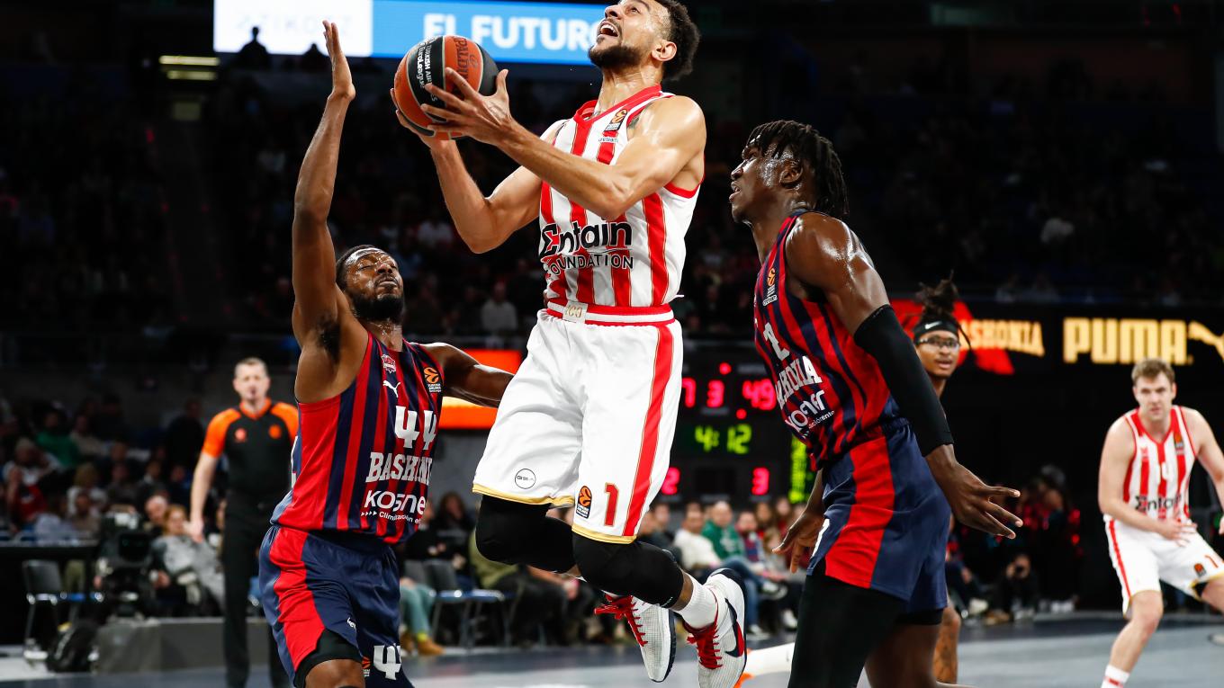 Μετά από μια συγκλονιστική ματσάρα, κατά τη διάρκεια της οποίας αντιμετώπισαν πολλές δυσκολίες, οι «ερυθρόλευκοι» κατάφεραν τελικά να πανηγυρίσουν τη σημαντικότατη νίκη με 102-101 στην παράταση (89-89 η κανονική διάρκεια) κόντρα στην Μπασκόνια, συνεχίζοντας μόνοι πρώτοι στην κορυφή της Ευρωλίγκας!