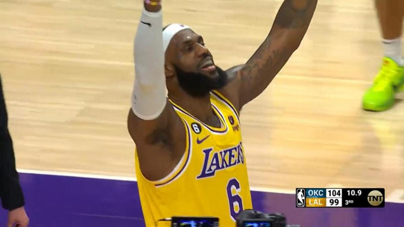 Λίγο πριν το τέλος της τρίτης περιόδου του αγώνα με τους Θάντερ στην Crypto.com Arena, ο σταρ των Λέικερς με ένα fadeaway σουτ έγινε ο πρώτος σκόρερ στην ιστορία του NBA, ξεπερνώντας τον σπουδαίο Καρίμ Αμπντούλ-Τζαμπάρ.