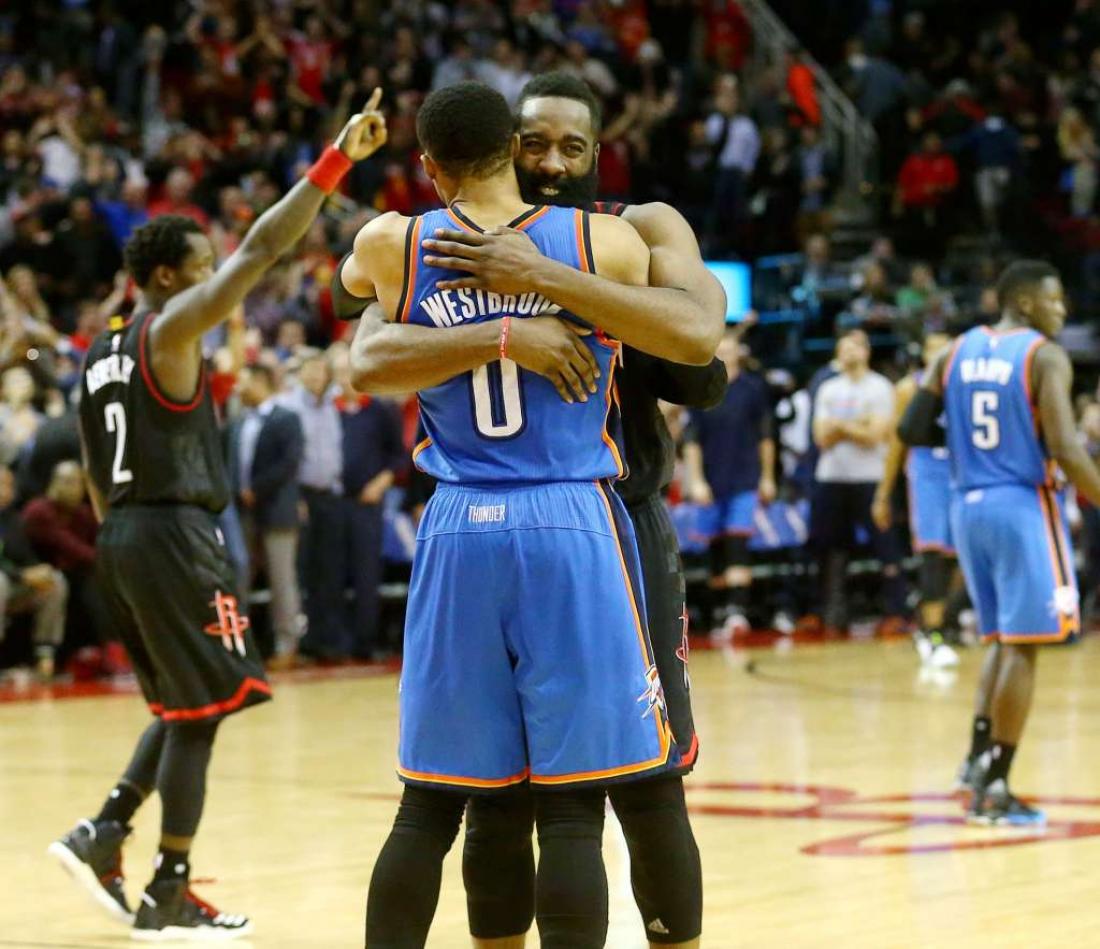 Ο Russell Westbrook είχε 49 πόντους (μαζί με 8 ριμπάουντ και 5 ασίστ), αλλά δεν κατάφερε να οδηγήσει τους Thunder στη νίκη απέναντι στους Rockets (118-116). Οι Rockets, που είχαν προηγηθεί με 18, έσπασαν την ισοπαλία με δύο βολές του Nene Hilario στα 0,7’’ πριν το τέλος, μετά από πάσα του James Harden που είχε 26 πόντους.