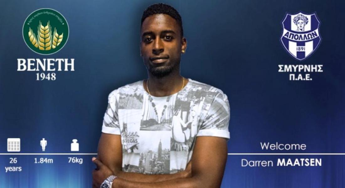 ΠΑΕ Απόλλων Σμύρνης ανακοινώνει την απόκτηση του ποδοσφαιριστή Ντάρεν Μάατσεν. Γεννημένος στις 30 Ιανουαρίου 1991, ο Ολλανδός επιθετικός έχει αγωνιστεί σε Γκο Αχέντ Ιγκλς, Αγία Νάπα, Ντεν Μπος, Ρος Κάουντι και Εξέλσιορ".