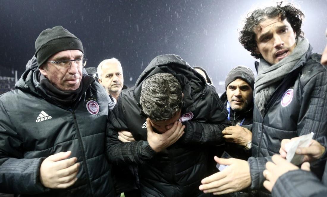 Ο προπονητής των Πειραιωτών, που δέχθηκε ρολό ταμειακής στο πρόσωπο, με αποτέλεσμα η «ερυθρόλευκη» αποστολή να αποχωρήσει σύσσωμη από την Τούμπα και το ντέρμπι με τον ΠΑΟΚ να είναι σχεδόν σίγουρο, πια, ότι θα αναβληθεί, νοσηλεύεται και θα μείνει απόψε στο νοσοκομείο, από το οποίο θα πάρει, εκτός απροόπτου, εξιτήριο αύριο, όπως αναφέρει το επίσημο ιατρικό ανακοινωθέν.
