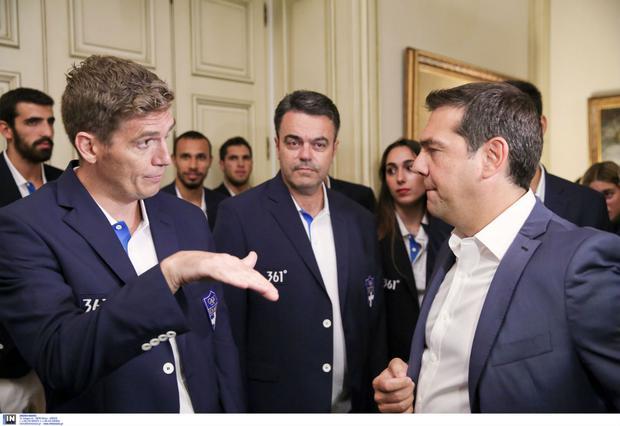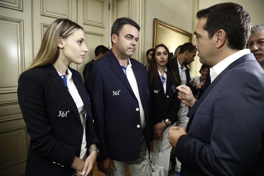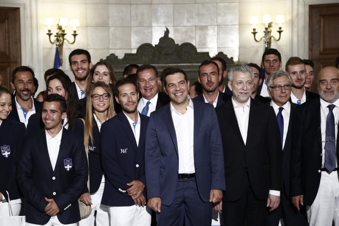 Η αντιπροσωπεία των αθλητών, μαζί με τον αρχηγό της ελληνικής αποστολής στο Ρίο, Σπύρο Καπράλο, τον γενικό γραμματέα της ΕΟΕ, Μανώλη Κατσιαδάκη και τον υπαρχηγό της αποστολής Μανώλη Κολυμπάδη πήγαν στο Μαξίμου στις 19:30.