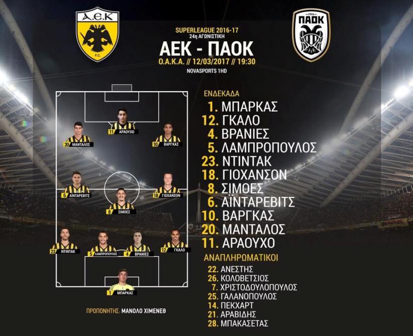 Χωρίς ιδιαίτερες εκπλήξεις ήταν οι ενδεκάδες των δυο προπονητών. Ο Χιμένεθ επέλεξε διάταξη 4-3-3 και πέραν του Γκάλο, επανέφερε στο αρχικό σχήμα τον ήρωα των περσινών ντέρμπι, Ρόναλντ Βάργκας. Ο Ίβιτς, από την άλλη, έμεινε πιστός στο 4-2-3-1 και κρατώντας στον πάγκο τον Κάνιας, έδωσε φανέλα βασικού στον Ενρίκε. Έτσι, οι «δικέφαλοι» παρατάχθηκαν ως εξής στον αγωνιστικό χώρο: