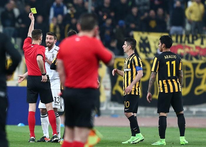 Αφού την έβγαλε... καθαρή λοιπόν σε όλες αυτές τις περιπτώσεις, ο ΠΑΟΚ αναθάρρησε. Έψαξε το γκολ της ισοφάρισης πριν το ημίχρονο. Και θα μπορούσε να το έχει βρει, αν ο Γκάλο δεν έκοβε σωτήρια τον Κρέσπο κι αν ο Μπάρκας δεν σταματούσε εντυπωσιακά την κεφαλιά του Μάτος απ' την εκτέλεση του κόρνερ. Έτσι, η ΑΕΚ πήγε προηγούμενη στ' αποδυτήρια. Κι όταν επέστρεψε απ' αυτά πήρε ακόμα μεγαλύτερο πλεονέκτημα. Χάρη στην απερισκεψία του Μαλεζά που βλέποντας ότι δεν μπορεί να σταματήσει αλλιώς τον Αραούχο, έκανε χέρι και είδε δεύτερη κίτρινη κάρτα.