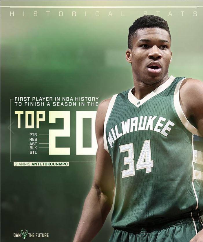 Ο Έλληνας άσος είναι ο πρώτος στην ιστορία που βρέθηκε στην πρώτη 20άδα σε πέντε στατιστικές κατηγορίες. Σε πόντους, ασίστ, ριμπάουντ, κλεψίματα και τάπες.