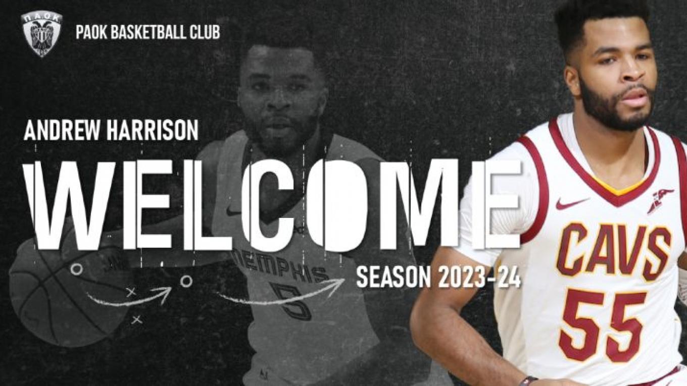 «Η ΚΑΕ ΠΑΟΚ mateco ανακοινώνει τη συμφωνία με τον Αμερικανό γκαρντ Andrew Harrison, ο οποίος θα αγωνιστεί στην ομάδα μας τη σεζόν 2023-24. Καλωσορίζουμε στη μεγάλη οικογένεια του ΠΑΟΚ, ένα σπουδαίο αθλητή με σημαντική παρουσία και στο ΝΒΑ!