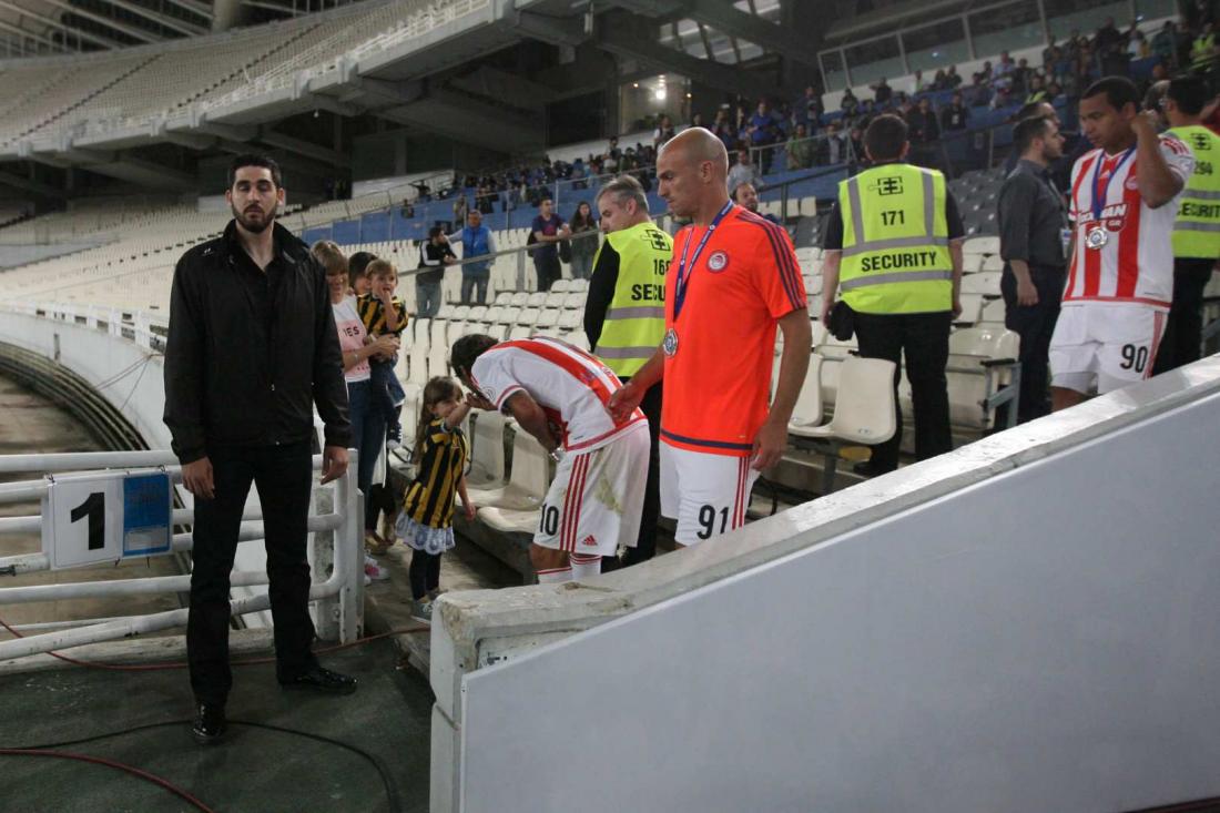 Ένα χειροφίλημα στην κόρη του Ντιέγκο Μπουονανότε, από τον άσσο του Ολυμπιακού Τσόρι Ντομίνγκες, μετά τον τελικό του Κυπέλλου Ελλάδας 2016 στο ΟΑΚΑ, έκλεψε για μία στιγμή την παράσταση και τα φλας των φωτογράφων που απαθανάτιζαν την απονομή του Κυπέλλου Ελλάδας στην ΑΕΚ.