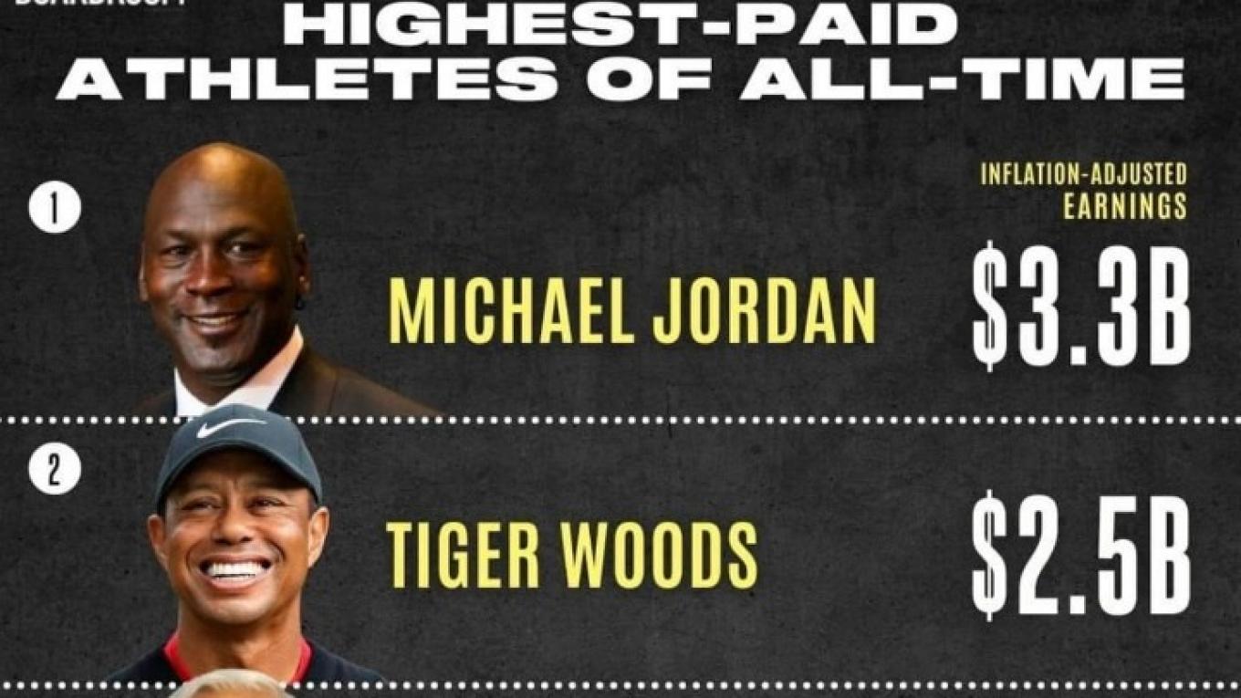 Ο Τζόρνταν και ο Τζέιμς ηγούνται μιας ομάδας 13 παικτών του ΝΒΑ στους 50 κορυφαίους αθλητές με τα περισσότερα έσοδα όλων των εποχών, τους περισσότερους από οποιοδήποτε άθλημα. Οκτώ παίκτες του γκολφ βρίσκονται στους 50 κορυφαίους, συμπεριλαμβανομένων των τριών αθλητών που κατατάχθηκαν ακριβώς πίσω από τον Τζόρνταν: Τάιγκερ Γουντς, Άρνολντ Πάλμερ και Τζακ Νίκλαους (1,63 δισεκατομμύρια δολάρια).
