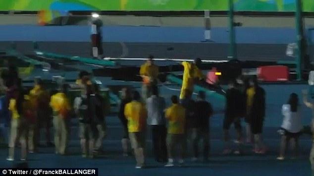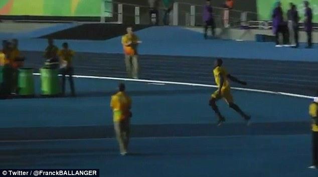 Ο Μπολτ άρπαξε ένα ακόντιο και ζητώντας από όσους είχαν απομείνει (εργαζόμενους και εθελοντές) στο στάδιο να χειροκροτούν την προσπάθειά του, πήρε φόρα και έκανε την βολή του.