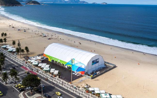 Η ατμόσφαιρα χαλάρωσης στην παραλία της Κόπακαμπάνα. Μπιτς βόλεϊ, δροσιστικά ποτά και το μεγαλύτερο κατάστημα με είδη των Ολυμπιακών Αγώνων