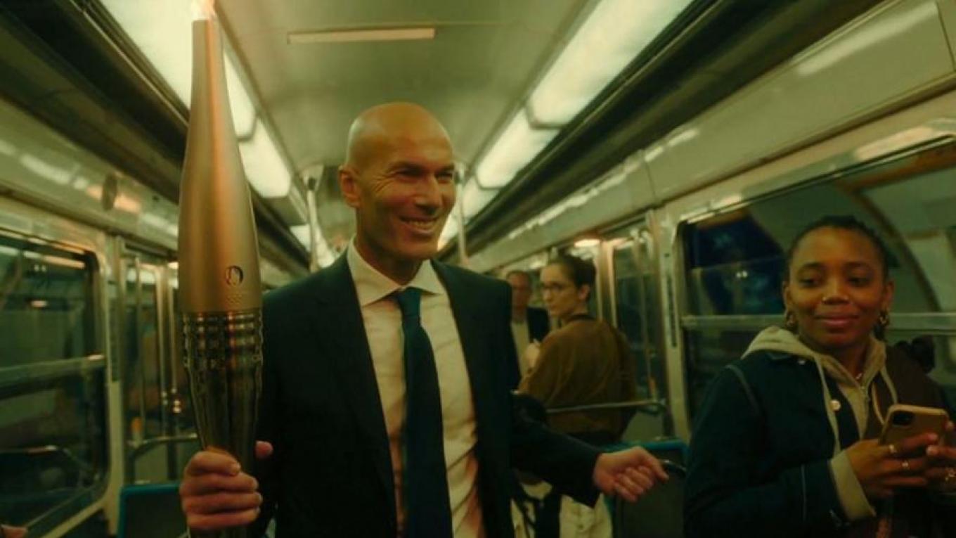 Στα πλάνα φάνηκε ο θρυλικός Γάλλος ποδοσφαιριστής να παίρνει τη δάδα με την Ολυμπιακή Φλόγα, τρέχοντας μαζί της στους δρόμους της γαλλικής πρωτεύουσας, πριν καταλήξει στο μετρό, για να την παραδώσει στον νεαρό που εμφανίστηκε σε ζωντανή μετάδοση στον Σηκουάνα, ανοίγοντας την παρέλαση!