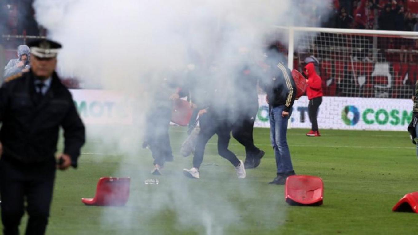 Τότε υπήρξε εισβολή οπαδών στον αγωνιστικό χώρο, τους οποίους επιχείρησαν να απομακρύνουν αστυνομικές δυνάμεις κάνοντας χρήση χημικών ουσιών.