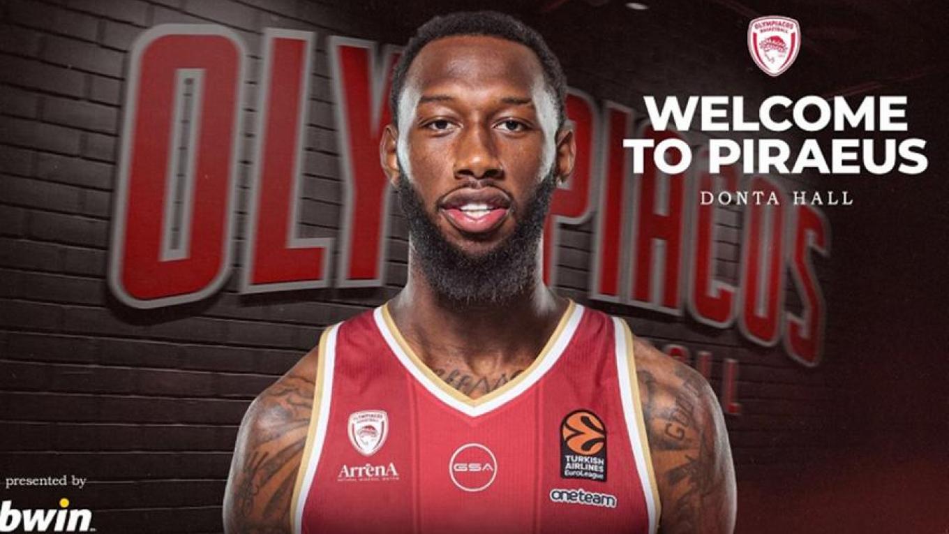 «Η ΚΑΕ Ολυμπιακός ανακοινώνει την απόκτηση του Donta Hall. Ο Αμερικανός σέντερ υπέγραψε με την ομάδα μας συμβόλαιο τριετούς διάρκειας.